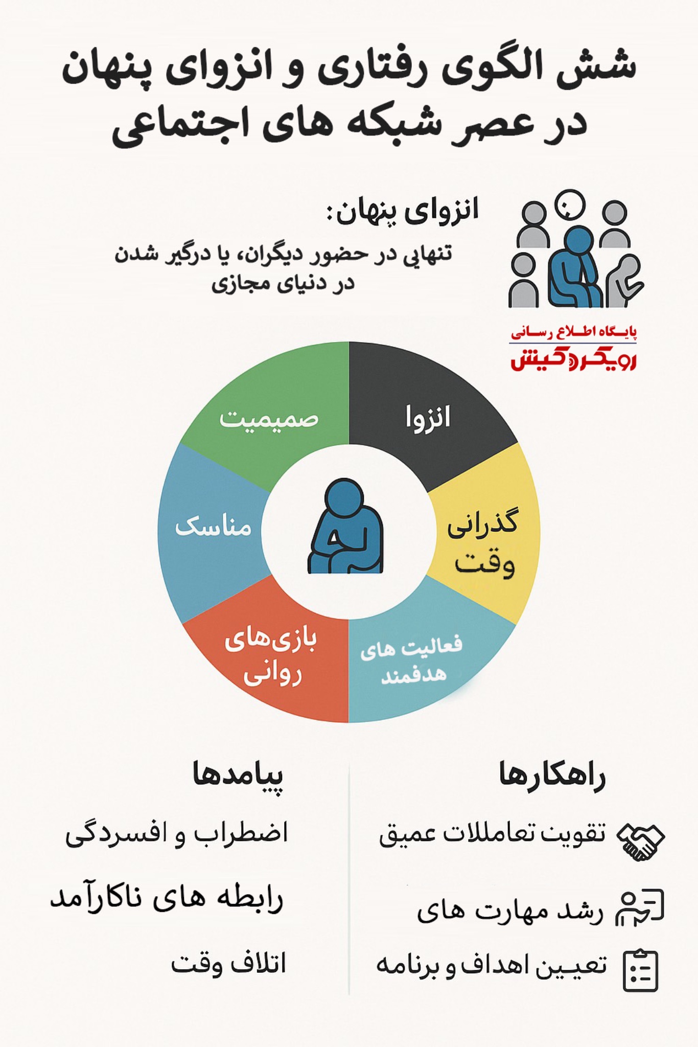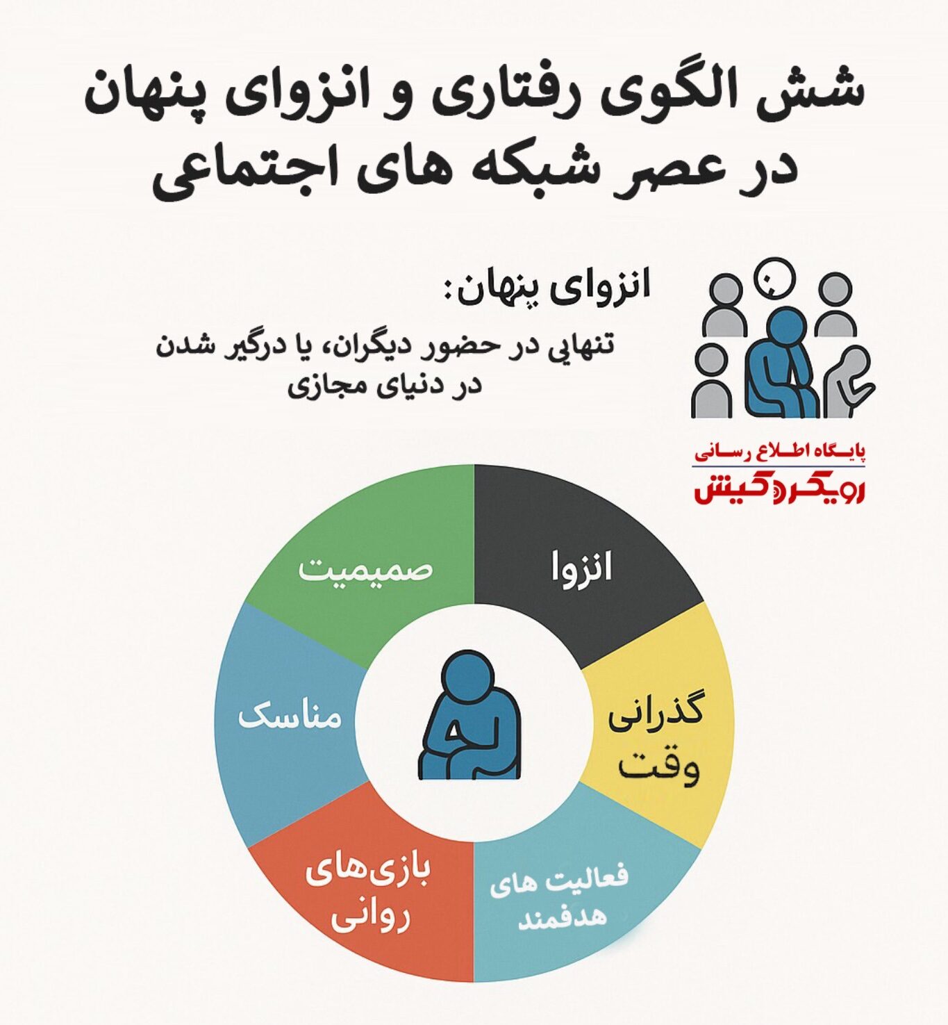 به گزارش رویکرد کیش، انزوای پنهان یا خاموش، تجربه ای دردناک و گمراه کننده است، زیرا فرد احساس می کند با ارتباطات احاطه شده، اما همچنان در خلاء عمیق از احساس تنهایی و عدم تعلق غرق است. گسترش این پدیده با فراگیر شدن استفاده از ابزارها و پلت فرم های ارتباطی دیجیتال، موضوعی است که نیاز به تحلیل عمیق و شناخت سازوکارهای آن دارد.