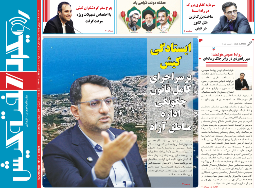 به گزارش رویکرد کیش، شماره ۱۳۵ هفته‌نامه «رویکرد هفته کیش» روز شنبه ۸ شهریور ۱۴۰۴ با تمرکز بر مسئولیت‌های اجتماعی و تحلیل داده‌های خبری چاپ و منتشر شد.