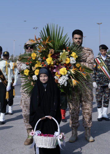 پیکر مطهر شهید گمنام که در عملیات والفجر یک در منطقه فکه تفحص شده بود؛ بر روی دستان مردم کیش ...